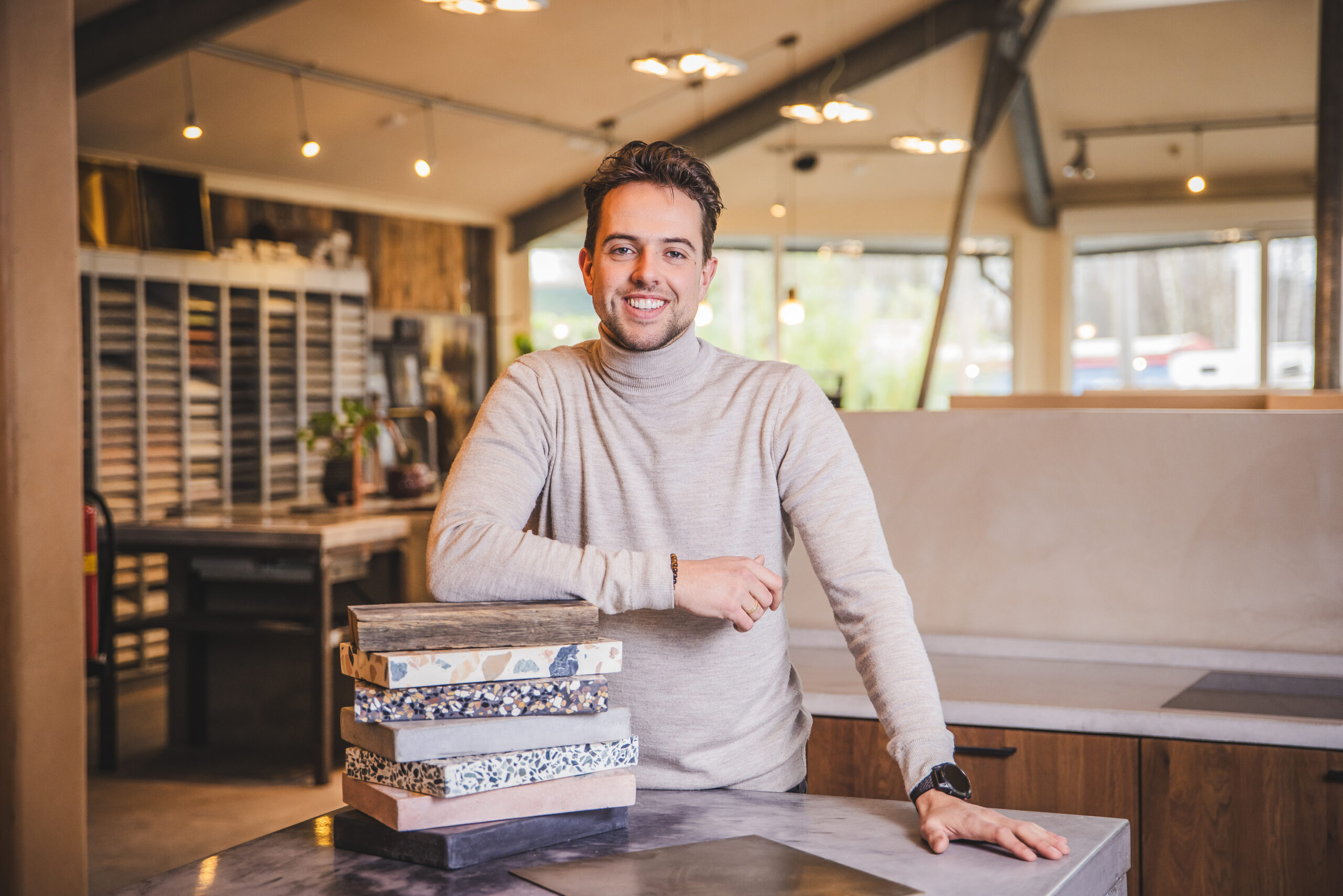 Peter Kok is rap van tong en razend enthousiast over zijn vak. Logisch dat hij het bedrijf dat hij tien jaar geleden met behulp van zijn vader op poten heeft gezet op een unieke manier doelgericht doorontwikkelde tot een toonaangevende alleskunner op het gebied van maatwerk beton en terrazzo.
